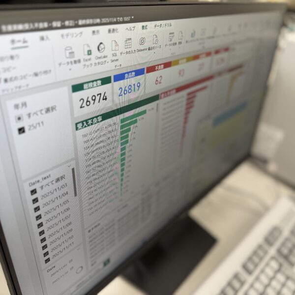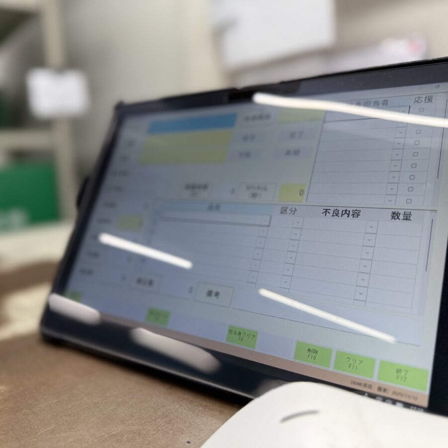 全検査作業員にタブレットを配布し、生産および出荷の実績を記録しております。